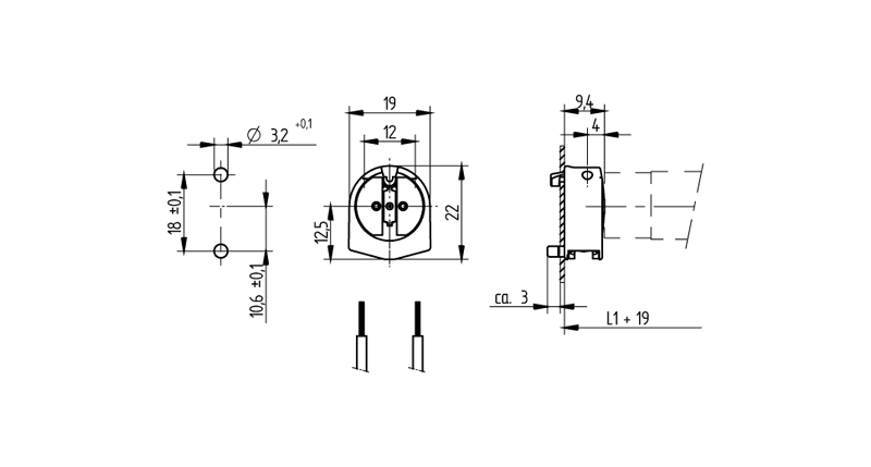 Патрон G5 торцевой 09404 505732, для ламп T5. Vossloh-Schwabe (Германия)